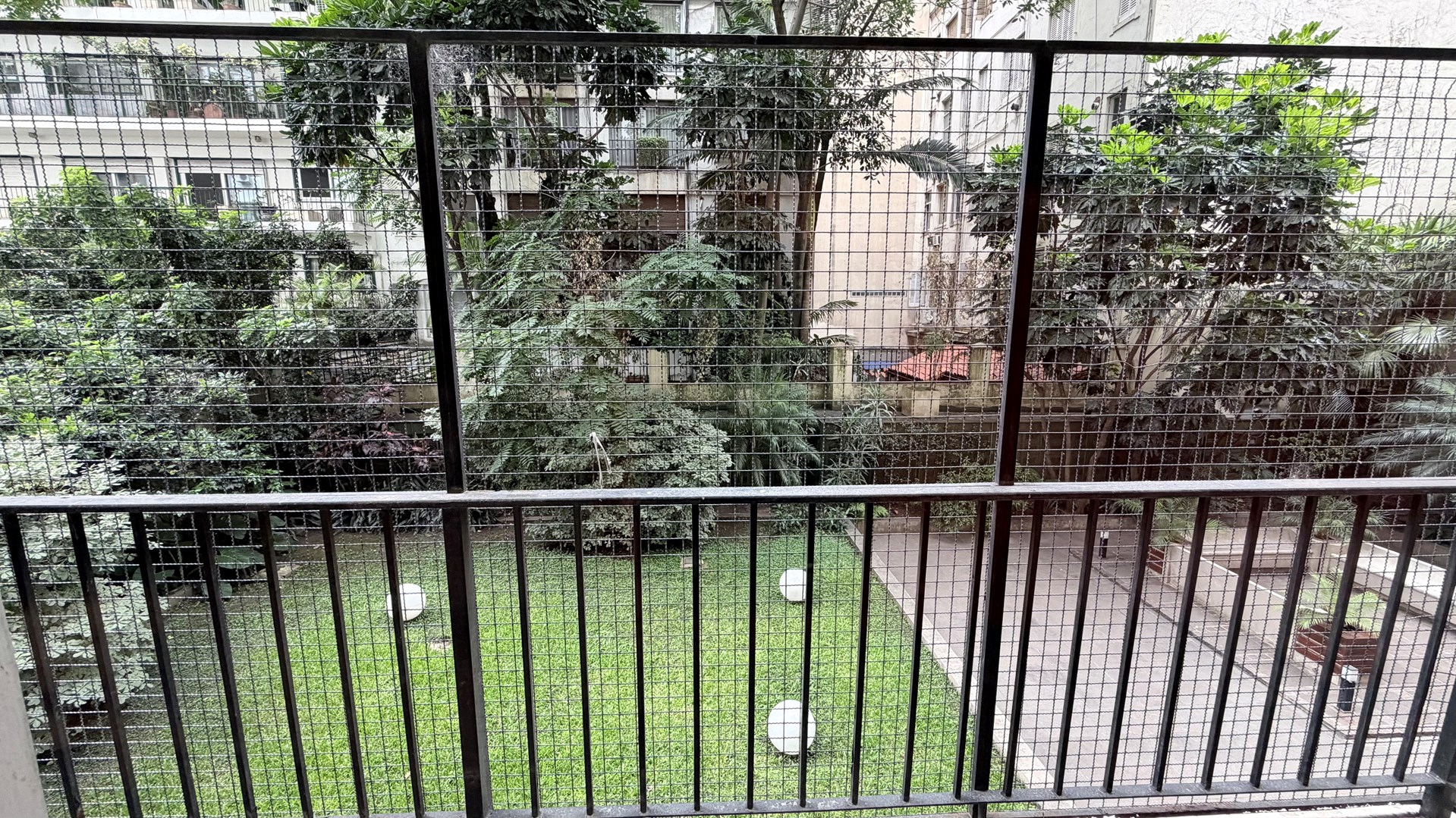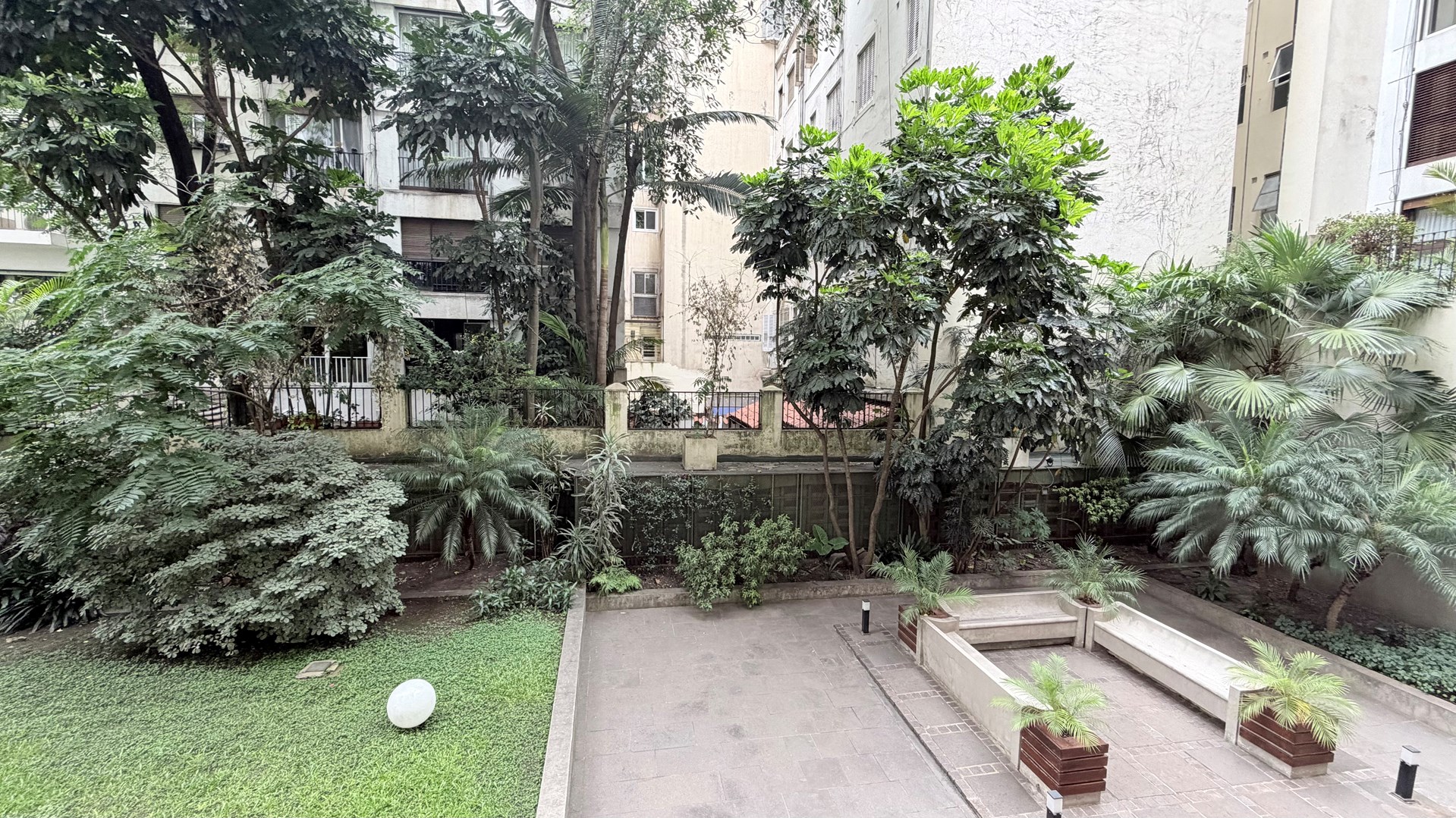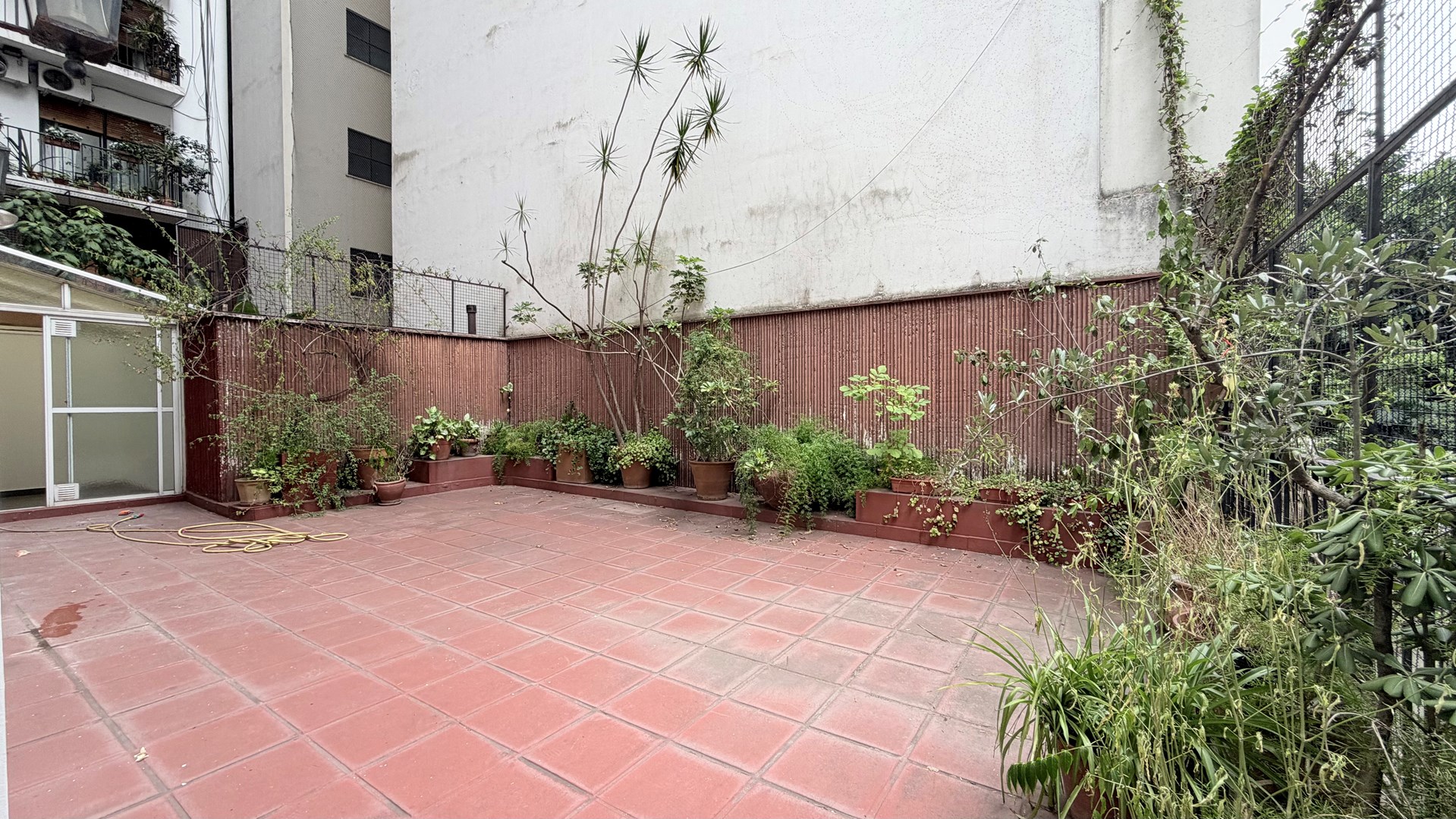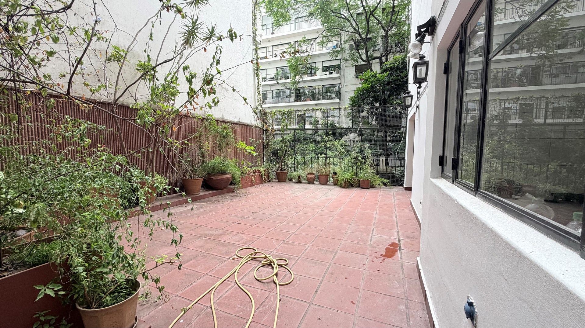 Amplia terraza propia con vista a el jardín del edificio.
